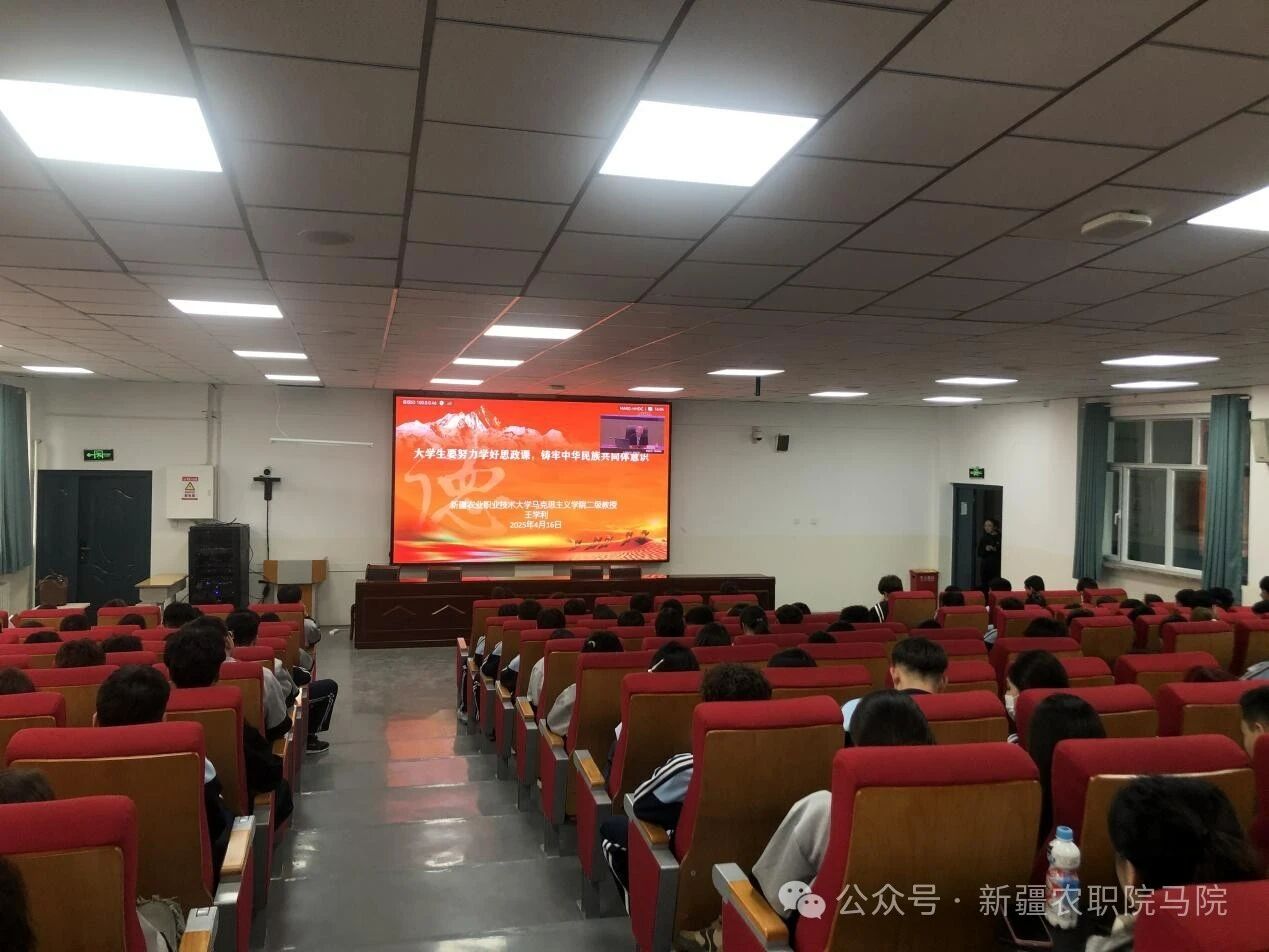2025年4月16日下午,由自治区党委教育工委、自治区教育厅主办,新疆高校党建和思想政治工作创新发展中心(新疆大学)承办的新疆高校思想政治理论公共选修课2025年春季学期“经典照耀青春讲堂”第六讲“大学生要努力学好思政课,铸牢中华民族共同体意识”开讲,本场讲座授课专家为国家级教学名师、全国教书育人楷模我校马克思主义学院王学利教授,新疆农业职业技术大学商贸学院学生和马克思主义学院教师通过线上直播同步收看。