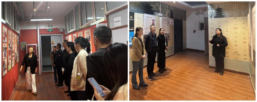 党日活动共分为三个环节进行。第一环节是参观“四史”展馆、中国德育馆(新疆馆)。马克思主义学院谭静老师和王微老师进行了详细讲解。